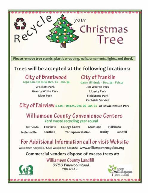 Collection and Disposal Sales. Keep Nolensville Beautiful Williamson County Recycling Information. Despite the many Williamson County recycling centers sometimes an old television is just too big or heavy to haul by yourself in Franklin TN.